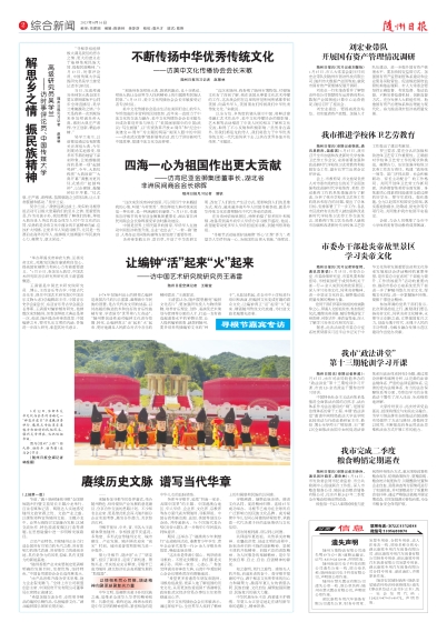 随州日报讯(见习记者钟金辉、通讯员黄锐)6月15日,市委办公室、市委政策研究室、市委机要和保密局、市档案馆班子成员和机关干部一行60余人来到炎帝故里景区,深入学习炎帝文化,传承炎帝精神,进一步坚定文化自信,凝聚推动高质量发展的精神力量。