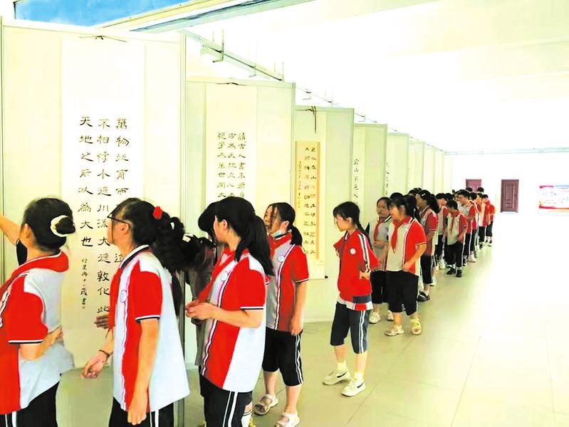 近日,曾都区白云湖学校举办“涢水春风”师生书法作品展,营造浓厚的校园文化氛围,培养学生健康的审美情趣和艺术素养。 (随州日报通讯员 孙秀芬摄)