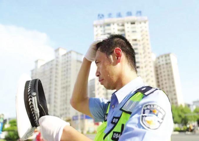 烈日炙烤加上过往车辆排放的尾气,使方晓所处的位置温度快速飙升,豆大的汗珠挂在额头和脸上,早已湿透的警服紧紧贴在后背,但他的眼睛始终紧盯交通现场,一次次挥舞着手臂。“天气虽热,我们的工作标准却不能降。”工作间隙,方晓用简短的话语说出他的感受。