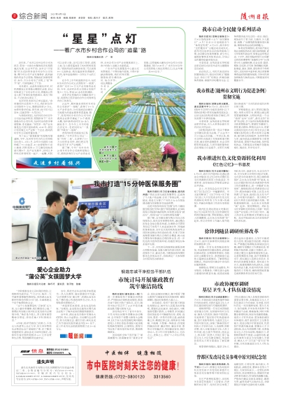 随州红色遗址遗迹文史集《红色记忆》是我市红色文化资源转化利用的集成开篇。罗栋梁提出,要深入挖掘整理,让红色文化资源“亮”起来,把文史资料工作融入提升随州红色文化、旅游文化、生态文化中来,充分发挥文史资料对经济发展、文化进步的助推作用;要注重修缮保护,让红色文化资源“传”起来,充分认识做好我市红色资源保护利用工作的重要意义,进一步摸清“红色家底”,继续推进红色资源普查认定工作;要加快融合发展,让红色文化资源“活”起来,推动红色文化与产业、乡村振兴的融合,助力特色产业壮大和农文旅深度融合发展;要构建保障机制,让红色文化资源“强”起来,要统筹规划,将红色文化资源转化利用纳入到新一轮的文旅产业发展三年行动计划中,融入经济社会和精神文明建设全过程,高水平推动红色文化有效保护和传承弘扬。