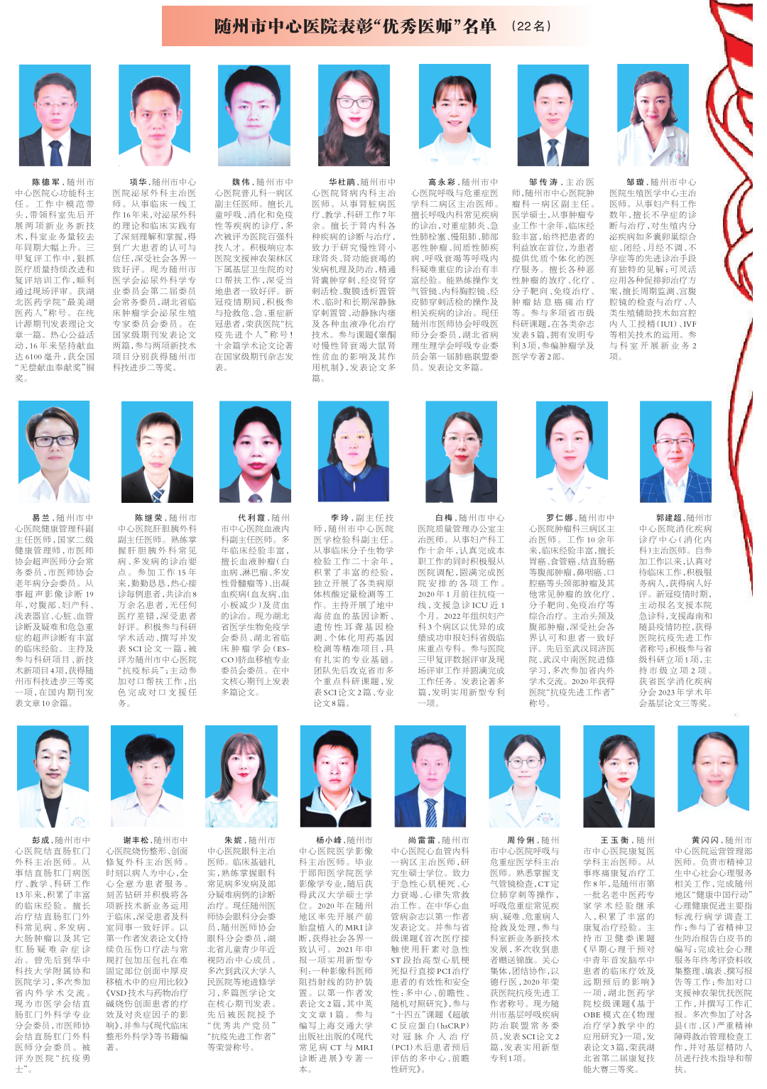 随州市中心医院表彰“优秀科主任”名单(9名)