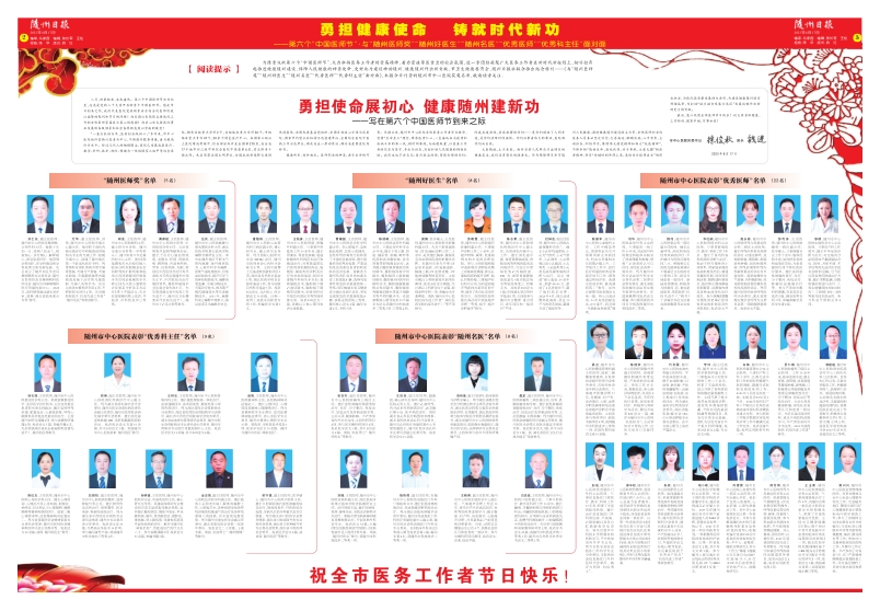 随州市中心医院表彰“优秀科主任”名单(9名)