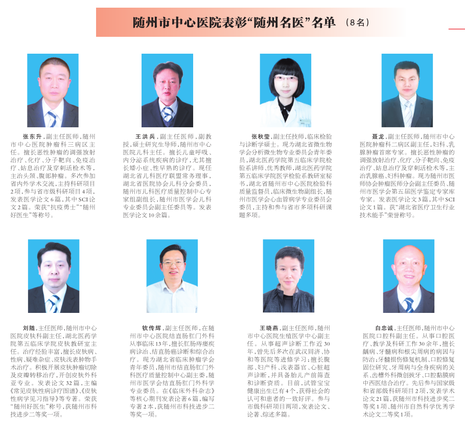随州市中心医院表彰“优秀科主任”名单(9名)