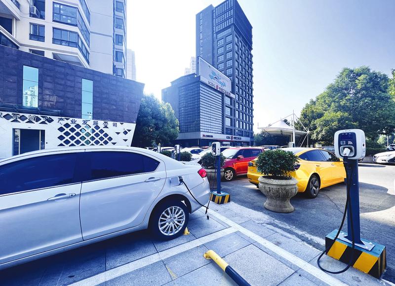 在市政务服务中心停车场看到,7月份开工的光伏+充电站一体化项目正在抓紧推进,预计9月份可建成投入使用,届时将新增15个快慢充电桩,可满足20辆车同时充电。