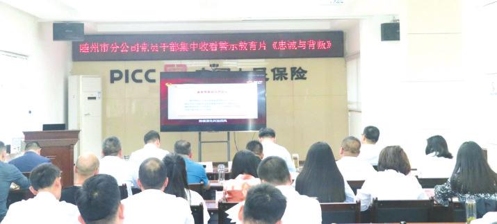 组织党员干部集体观看警示教育片《忠诚与背叛》,让党员干部通过观影领悟什么是对党忠诚、什么是对人民背叛,使党员干部增强合规和遵纪守法意识,在思想上和行动上自觉构筑起拒腐防变的坚固堤坝,为公司实现高质量发展提供坚强政治保障。