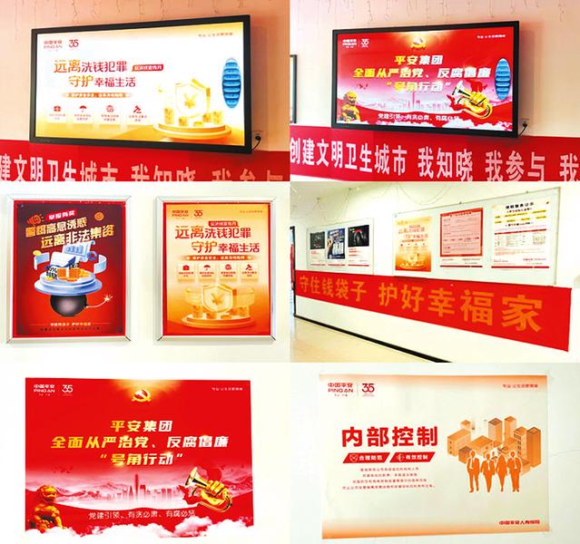 在客服大厅摆放合规知识宣传折页;在走廊、会议室等张贴合规宣传海报;将每月制作的最新合规期刊及监管动态信息在合规文化墙中进行张贴,让客户和员工能更直观了解合规内容。引导公众加强法律意识和员工主动合规的意识。