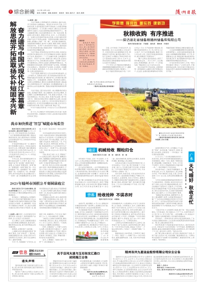 金秋时节,稻谷飘香。10月11日,曾都区何店镇金花岭村的广袤田野上,收割机正在忙碌,辛勤劳作的农人们也迎来累累硕果。