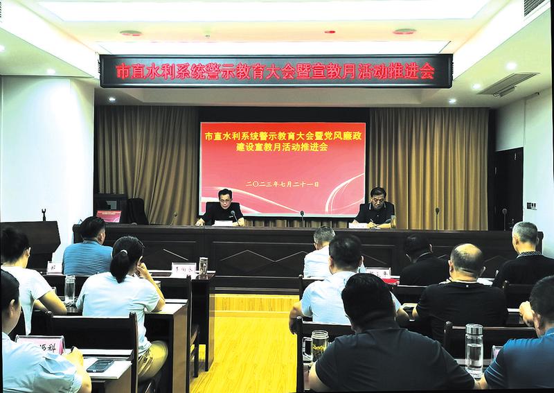 开展违法警示教育。将发生在身边的典型案例编印成学习资料,并发给局属各单位进行学习,以案说法、以案示警,最大限度放大警示教育效果。市直水利系统180余人参加学习。