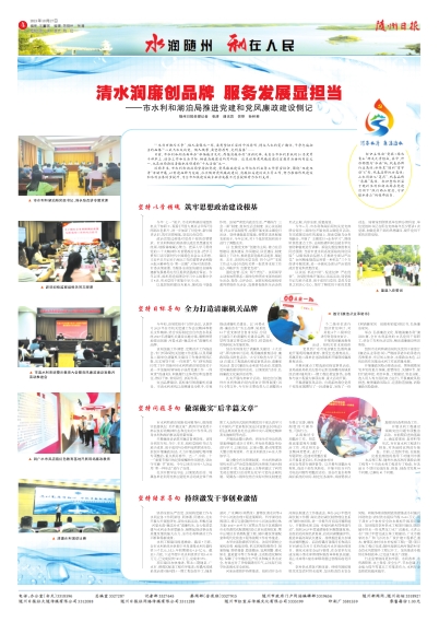 近两年来,市水利和湖泊局坚持把党建、党风廉政建设工作与水利业务工作紧密结合,围绕“双建双争”活动开展,以创建品牌为突破,扎实做好党风廉政建设、清廉机关建设试点等工作,努力推动作风建设和水利业务同步提升,为全市加快建设城乡融合发展示范区提供有力水利支撑。
