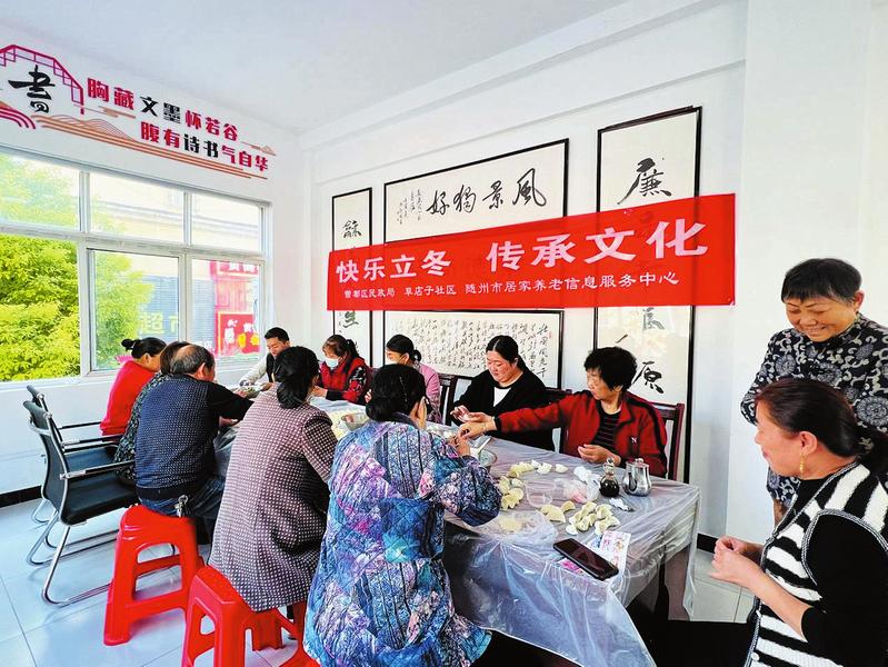 11月8日,是农历二十四节气——立冬。当天,曾都区西城街道草店子社区新时代文明实践站举行“快乐立冬,传承文化”包饺子活动。在社区红色驿站内,居民们积极参与,欢声笑语不绝于耳。 (随州日报全媒记者王聪莹、通讯员魏爽、王小西摄)
