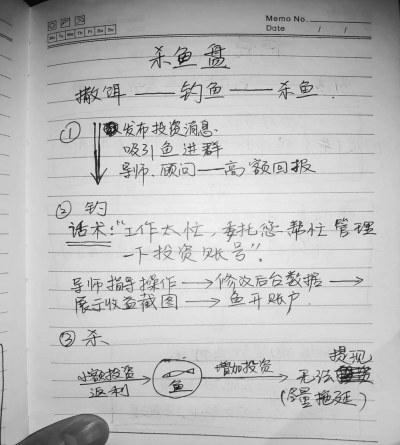 所谓的“杀鱼盘”就是指虚假网络投资理财类诈骗,骗子前期通常会以正规平台投资为借口,让受害人获得一点蝇头小利,然后再用高额回报的噱头诱导受害人到虚拟平台追加投资,这个过程在骗子的话术里就叫“撒饵”“钓鱼”,所以俗称“杀鱼盘”。