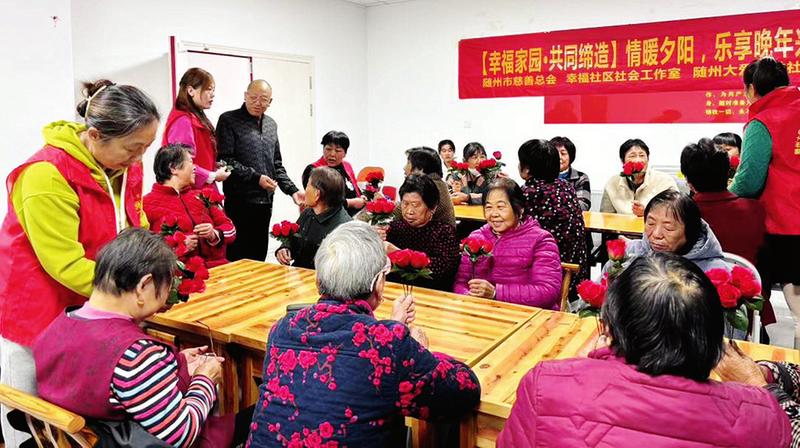 11月9日,随县厉山镇幸福村组织辖区老年人开展了“情暖夕阳乐享晚年”手工玫瑰花制作趣味活动,旨在提升老年人的动手能力,让老年人在活动中体验手工乐趣。 (随州日报通讯员 刘晓丽摄)