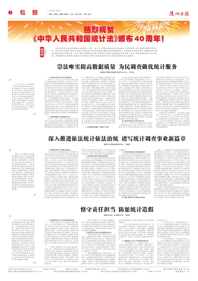 (一)聚焦靶向发力,引领法治宣传入人心。坚持多维普法思路,在日常调查、基层调研中,实现向统计调查对象发放《统计法律事务告知书》和《致国家调查户的一封信》全覆盖,把统计法治宣传渗透到任务布置、数据采集、质量复核、业务培训等统计调查工作全过程。同时充分利用中国统计开放日、“12·4”宪法日、“12·8”统计法颁布纪念日等重要时间节点,通过悬挂横幅、播放宣传片、发放宣传手册、向公众推荐“统计微讯”“湖北调查”“随州调查”公众号等,将传统方式与网络媒体有机结合起来,持续推进统计法治宣传工作。