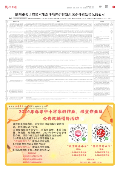 随州市关于省第六生态环境保护督察组交办件查处情况的公示