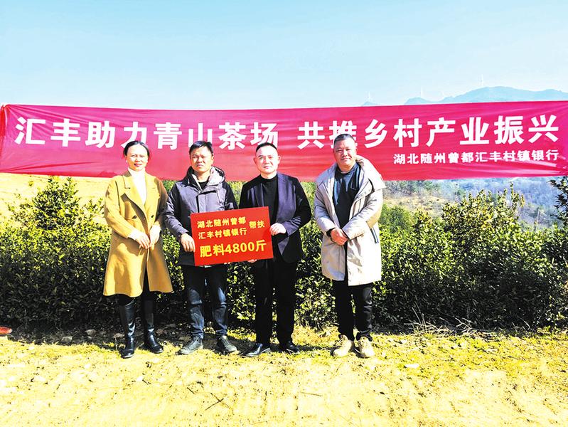 近日,随州曾都汇丰村镇银行为广水市武胜关镇青山村茶厂送去4800斤有机肥料,帮扶该村发展油茶产业。(随州日报通讯员李小蓉摄)