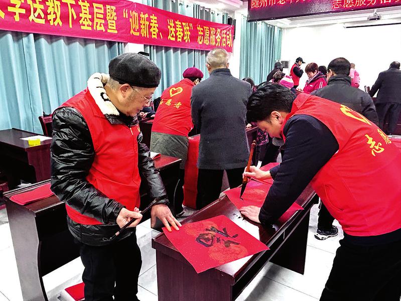 随州日报讯(全媒记者滕锐、通讯员程鹏)年味是毛笔弥留在对联上的墨香,是张贴在门头红火的福字。1月26日,市老年大学特聘教师、市老年书法家协会的老师们,来到随县洪山镇温泉村开展送教下基层暨“迎新春、送春联”志愿服务活动。