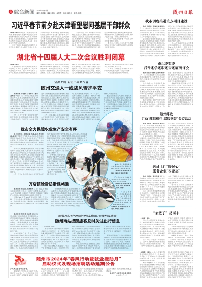 2024年春运已从1月26日开启。从随州南站了解到,春运开始后到站旅客量明显增加,在此轮低温雨雪天气来临前日均到达旅游4000多人,且旅客中以小孩、老人及携带大件行李的旅客居多。2月1日开始,因天气原因,湖北部分高速路口陆续关闭,铁路客运压力增加。2月2日,随州南站到达旅客5595人、发送旅客4885人。
