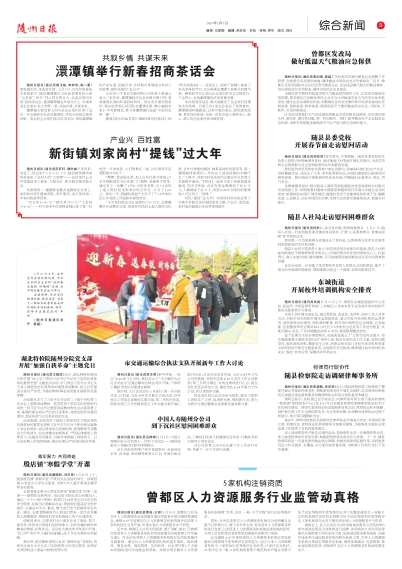 随州日报讯(通讯员蒋玉铭、李婉秋、陈一豪)悠悠涢水河,浓浓家乡情。2月1日,在龙年新春佳节来临前夕,随县澴潭镇在万亩油茶园科技小苑“山茶里”,举行“同心同行聚合力,共富共美向未来”招商茶话会,邀请澴潭籍在外成功人士、本地知名企业家40余人欢聚一堂,共叙乡情,共谋未来。