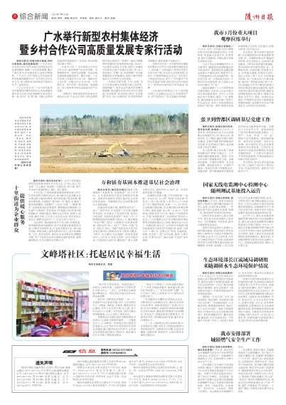 随州日报讯(全媒记者刘诗诗、通讯员尚勇、徐唯智)3月27日,市委常委、组织部部长张卫先后到曾都区洛阳镇君子山村、珠宝山村、胡家河村、九口堰村,就村后备干部队伍建设、党建引领新型村级集体经济发展、红色美丽村庄建设、基层减负等工作进行调研。