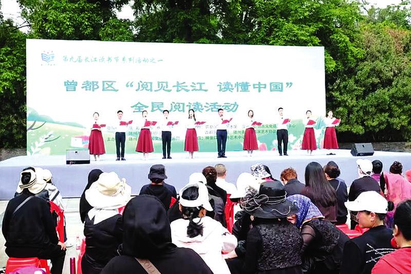 在第29个世界读书日和第九届长江读书节到来之际,由曾都区文化和旅游局主办,曾都区群众艺术馆、曾都区图书馆等单位承办的“阅见长江·读懂中国”全民阅读系列活动之“书香激扬曾都,悦读伴您前行”全民阅读活动在神农公园举行,推广全民阅读,共享书香文化。(随州日报全媒记者李文军、通讯员李静摄)