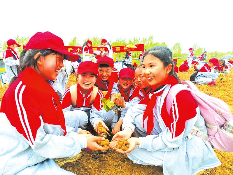 近日,曾都区实验小学在曾都区科学技术协会的指导下,组织全体五年级学生到校外劳动实践基地——湖北省宝蕈农业科技有限公司,开展“劳动教育+”课程实践活动——春种青苗活动。(随州日报通讯员施圆圆 孙海林摄)