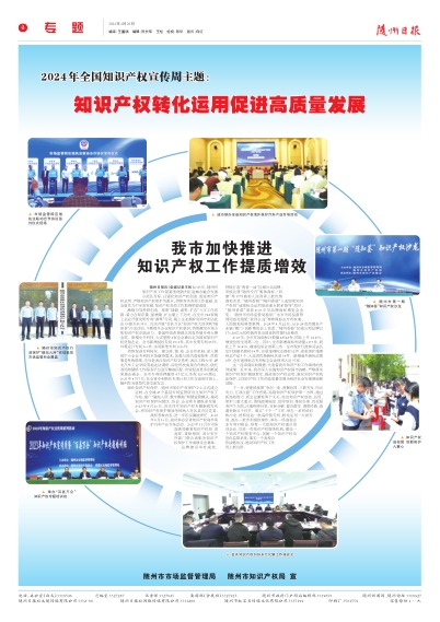 随州日报讯(全媒记者王松)2023年,随州市知识产权工作紧紧围绕随州打造城乡融合发展示范区目标,以强化知识产权创造、促进知识产权运用、严格知识产权保护为重点,持续夯实各项工作基础,在全面发力中寻求突破,知识产权各项工作取得明显成效。