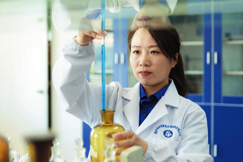 随州市水质检测中心工作人员对城区自来水采样进行检测