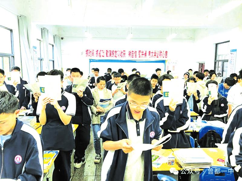 一排排学子,双手捧书,挺胸抬头;一字一句,饱含激情,铿锵顿挫……作为曾都一中“双语”(语文与英语)教学的传统活动,站立式激情朗读是学校的一大学科文化特色,琅琅读书声,成为校园里一道靓丽的风景线。(随州日报通讯员 李世军摄)