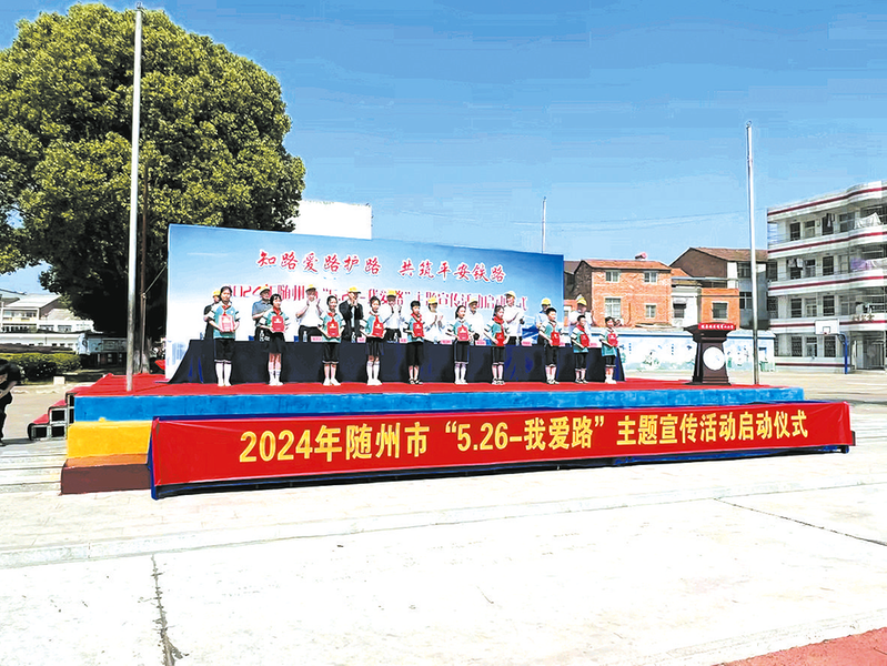 深入开展主题活动。2022年,在曾都区何店镇小学举办“寻根归故里、护路保平安”铁路环境大提质推进活动暨“5·26我爱路”铁路护路进校园宣传月启动仪式;2023年,在随县唐县镇第二中学举行“爱路护路、携手同行、争创平安铁路、护航高质量发展”暨“5·26我爱路”宣传月主题活动仪式;今年,在随县安居镇第二小学举办市铁路战线治安专项整治推进行动暨“5·26我爱路”宣传月主题活动。活动中通过表彰先进集体、发放宣传单、悬挂张贴横幅标语、印发致家长一封信、万人签名等活动,切实增强广大群众维护铁路安全的责任意识。同时,各级护路办以“5·26我爱路”铁路安全宣传主题活动为抓手,在沿线学校举行“铁路安全宣传成果巡回展”“争当爱路护路小卫士”等活动,不断加强在校学生的安全教育。
