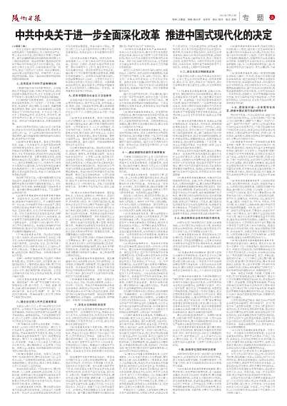 中共中央关于进一步全面深化改革 推进中国式现代化的决定
