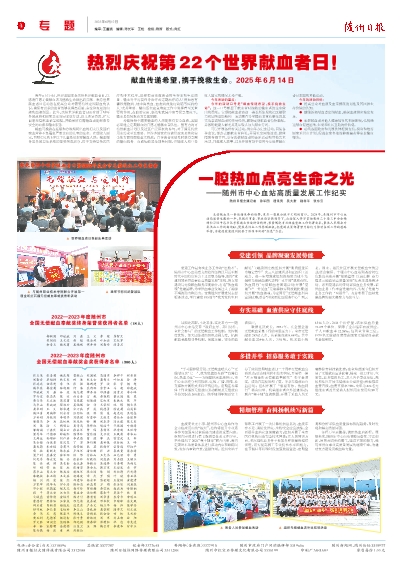 从细处着眼、小处着手、实处着力……随州市中心血站完善“政府主导、部门协作、全社会参与”的无偿献血工作机制,发挥制度优势,加大团体献血组织动员力度,拓展献血者激励引导机制,保障足量、安全的血液供应。