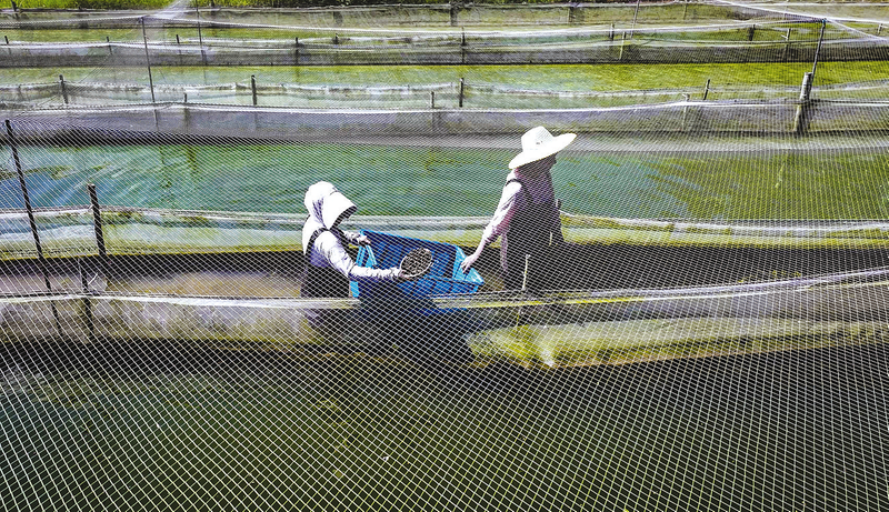 在随县均川镇柳树河村一处水蛭养殖基地,养殖户胡晓雨正在和工人一起下水撒播饵料螺喂养水蛭。水蛭四五月育苗,九十月成熟,眼下正是水蛭养殖最为忙碌的时期。该基地拥有水蛭养殖、培育和干品加工技术,养殖的水蛭销往全国各地。