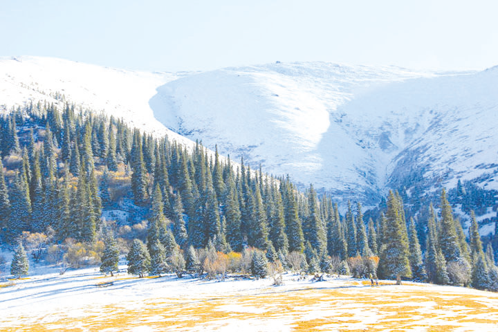 有一年清明节,我又去了陵园。雪水顺着松柏树枝嘀嗒坠落,陈俊贵正蹲在郑林书墓前擦拭相框。“这是老班长最爱抽的黄金叶。”他摸出半包香烟摆在碑前,抬头对我说,“您闻闻,是不是有股苞米香?”我凑近那支燃着的烟,恍惚看见风雪交加的天山上,4个年轻人手挽手,奋力而艰难地前行……