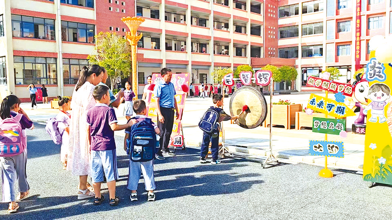 9月1日上午,随县炎帝学校广场上洋溢着新学期的蓬勃朝气。学生们满怀激动与喜悦,依次敲响“启智锣”。清脆而坚定的锣声在校园上空回荡,为新学期拉开了昂扬的序幕。(随州日报通讯员唐新虎摄)