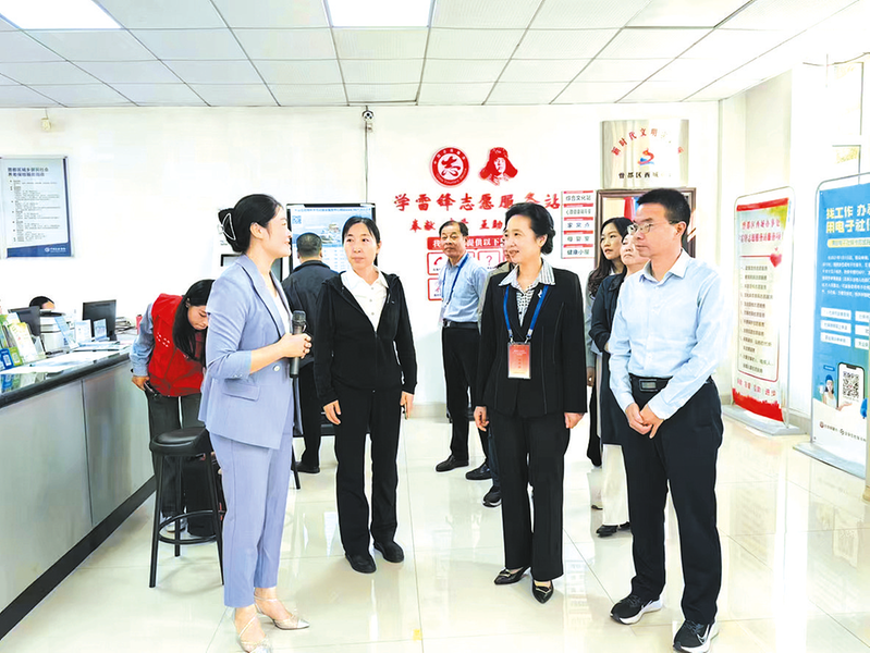 市人大常委会组织开展《随州市文明行为促进条例》贯彻实施情况专题调研。图为市人大常委会调研组在曾都区西城街道九曲湾社区新时代文明实践中心现场调研。