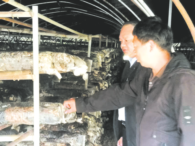 澴潭镇财政所负责人到高家冲村香菇基地了解种植情况