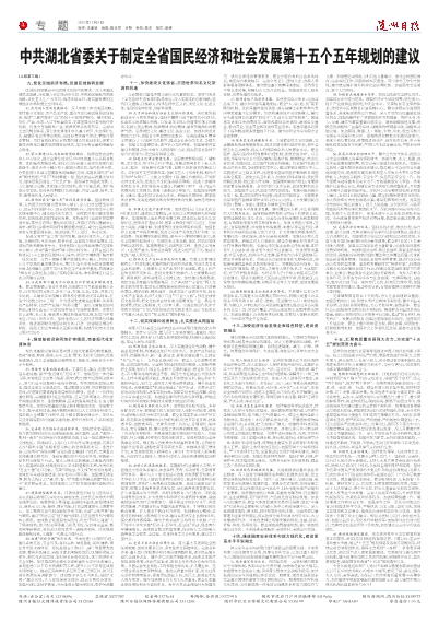 中共湖北省委关于制定全省国民经济和社会发展第十五个五年规划的建议