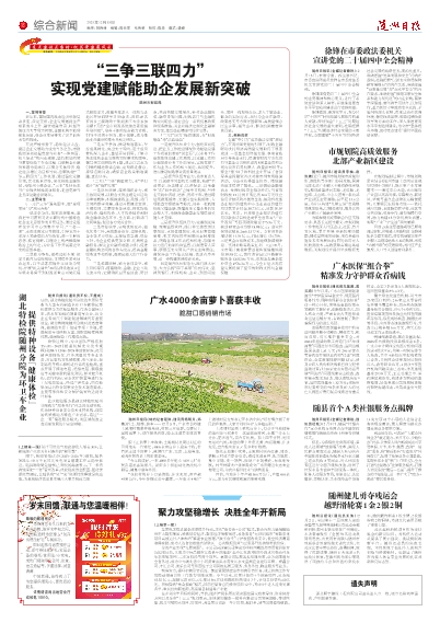 随州日报讯(特约记者程淇、通讯员杨明月、郑伟)抖土、削缨、装车……12月5日,广水市长岭镇土滩埔村蔬菜种植基地,村民三五成群,弯腰从土里拔出萝卜,动作娴熟利落,脸上洋溢着丰收的喜悦。