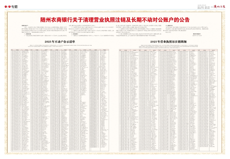 随州农商银行关于清理营业执照注销及长期不动对公账户的公告