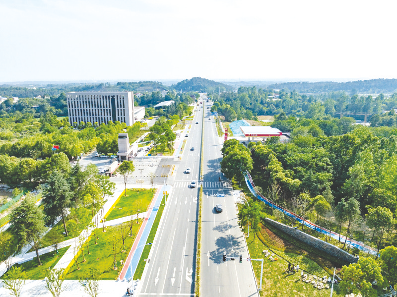 新增了慢行廊道的迎宾大道构建起“快慢分离”的和谐交通体系。(随州日报全媒记者陈云摄)