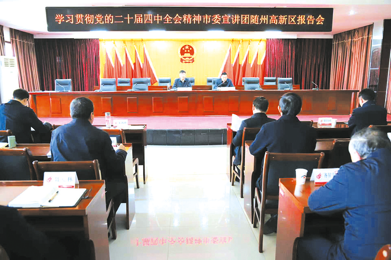 2025年11月21日,学习贯彻党的二十届四中全会精神市委宣讲团报告会在随州高新区举行。市委宣讲团成员,市人大常委会党组成员、副主任,随州高新区党工委书记、管委会主任郭晓东作宣讲报告