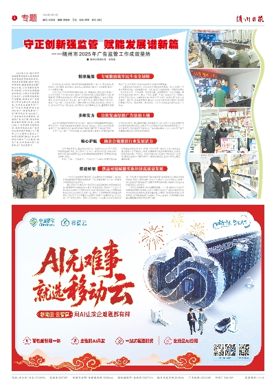 2025年以来,随州市市场监督管理局深入贯彻落实省市场监督管理局和市委、市政府决策部署,锚定“净化市场环境、服务高质量发展”核心目标,以专项整治筑牢民生防线,以宣传发动厚植法治根基,以助企合规护航行业成长,以供需对接架起产业桥梁,推动全市广告监管工作迈上新台阶。截至目前,全市企业名称中含“广告”行业代码的市场主体2200余户,经营范围含“广告”的市场主体3600余户,广告市场主体发展强劲。共监测广告2137条,移交转办违法案件线索125条,立案15起,广告市场秩序持续向好。选送作品在全省广告系列公益活动中斩获1个二等奖、2个入围奖;3家本土广告单位获评“湖北广告40年影响力媒介”,2人获评“湖北广告40年贡献人物”,彰显本土广告创意实力。