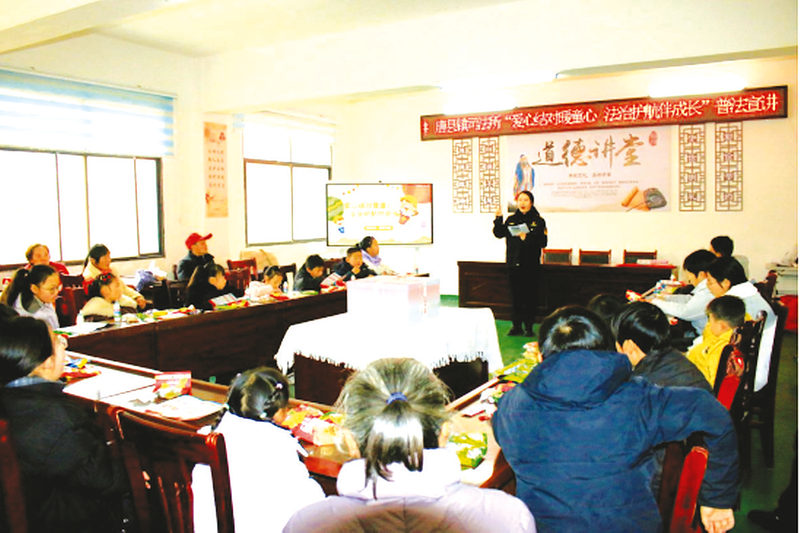 2月26日,在随县唐县镇“爱心妈妈结对留守儿童”集中关爱活动现场,唐县司法所联合镇妇联举办普法小课堂,为辖区留守儿童送上一份特殊的“法治礼物”,用爱心护航成长,用法律筑牢安全防线。