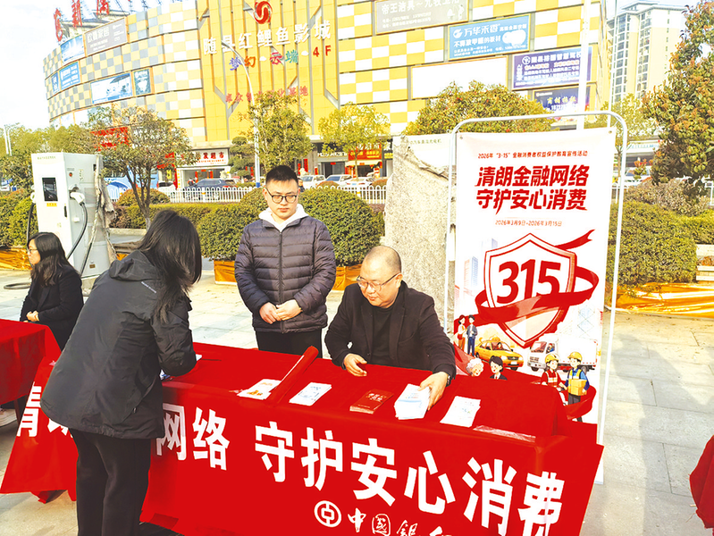 连日来,中行随州分行围绕“清朗金融网络守护安心消费”宣传为主题,走进社区、走上街头向市民广泛宣传金融知识,维护金融消费者合法权益,不断提升社会公众金融素养,着力营造清朗有序的金融市场环境。(通讯员蒋子云摄)