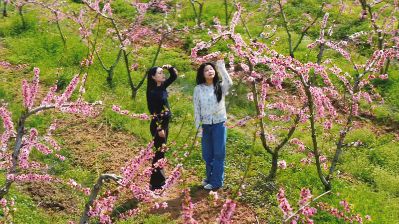 清晨薄雾未散,双寨村的桃园里已是游人如织,快门声此起彼伏。村民何大姐漫步在新修的采摘步道上,笑意盈盈地说:“以前村里冷清,没人来,现在桃花一开,游客络绎不绝,家门口就成了网红打卡地,我们的日子也越过越红火!”朴实的话语,道出了双寨村因花而兴的喜人变迁。