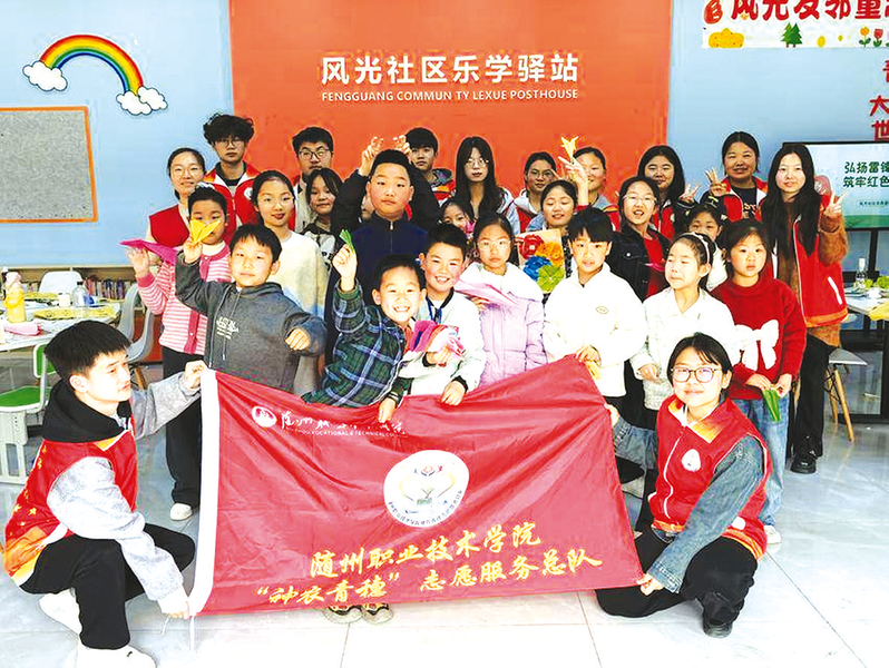 3月29日,曾都区涢水街道风光社区联合仁爱社会工作服务中心、随州职业技术学院神农青穗志愿者服务总队,在社区青少年活动中心开展首期“风光友邻·童趣公益课堂”活动。本次活动将红色精神传承与传统文化浸润有机融合,让孩子们在沉浸式体验中感悟红色精神力量、收获成长喜悦。 (通讯员 何奕洁摄)
