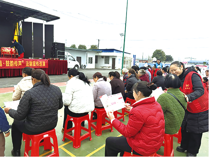 近日,“平安随县鼓韵传声”法治宣传巡演随县唐县镇站活动圆满举行。此次巡演以省级非遗义阳大鼓为传播载体,深入唐县镇乡村、校园开展精准普法,唐县镇司法所联合镇派出所、交警三中队、社区戒毒中心同步宣传法律法规,推动法治知识下沉一线、深入人心。(通讯员章婷婷摄)