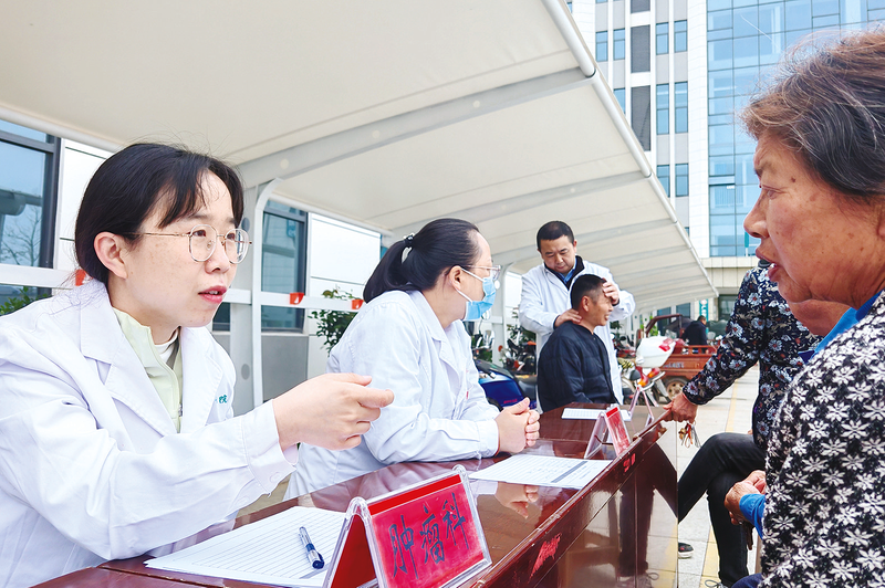 “专家多跑路,群众少跑腿。”4月15日,武汉同济医院胡莉亚博士(左一)带领广水市一医院肿瘤专业团队,走进郝店镇中心卫生院开展肿瘤防治筛查。博士团队下沉基层,把优质诊疗服务送到百姓家门口,让村民不用进城就能看上省级专家。 (通讯员何亚凌摄)